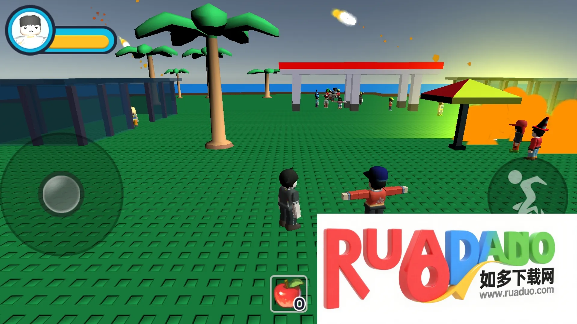 1. 游戏画面采用Q版乐高风格角色设计,灾难特效以动态像素粒子呈现,坍塌的楼房会碎裂成方块,洪水的波浪具有流动感,龙卷风会卷起角色形成旋转升空的动画,这种夸张表现既保留了像素艺术的趣味性,又强化了灾难的视觉冲击力。