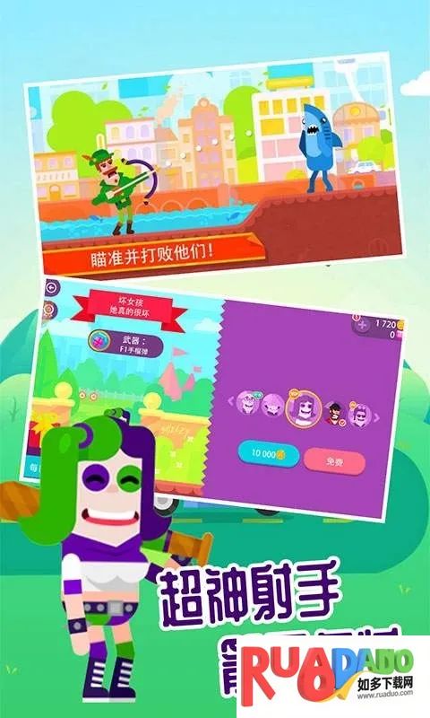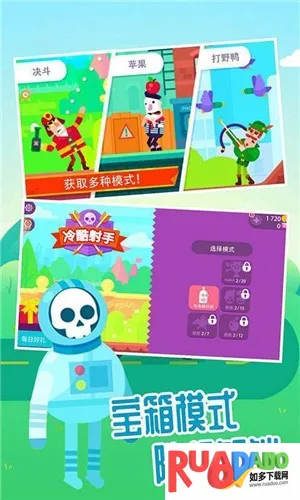 3. 能自由选择角色或弓箭皮肤,通过训练学射箭技巧。