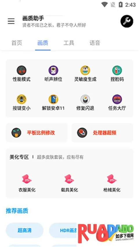 Lx画质助手120帧画质修改器可帮吃鸡等大型游戏玩家修改画质,兼容200余款机型与多地区服版本。通过智能渲染与数据库自动匹配最优参数,有智能适配等特色亮点,功能包括高帧率解锁等,能提升游戏体验。