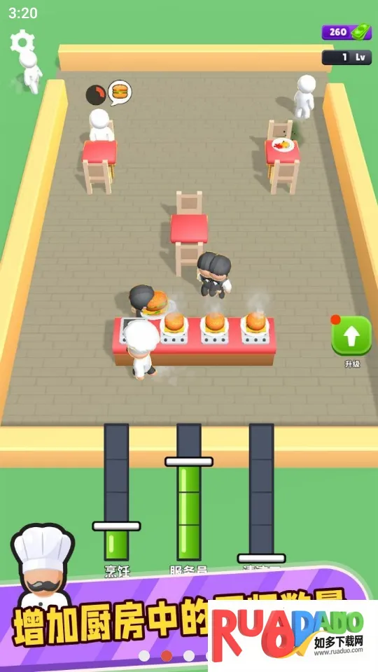 1. 其操作界面直觉化设计,让你能快速上手,通过拖拽食材、滑动控制煎烤时长等操作,轻松完成汉堡制作,多订单并行处理还能考验时间管理能力,带来有趣挑战。