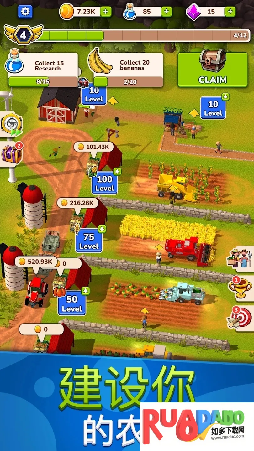 闲置农场收获帝国安卓版是模拟经营游戏,玩家可规划土地、种植作物、加工售卖,驾驶农用车扩大农场规模。有清新画风、丰富选项、自动化系统等,操作简单,节奏适中,能带来轻松又有成就感的经营体验。