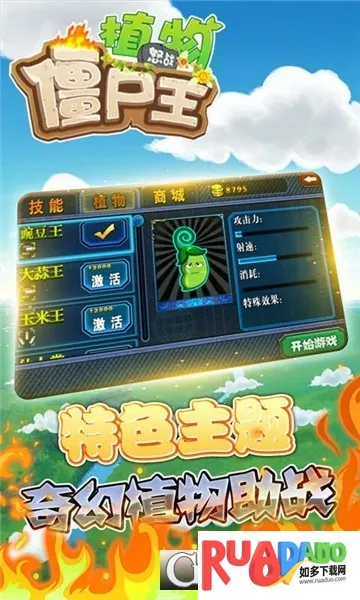 2. 有具备超能力的植物可供选择,能使用强大攻击技能作战。
