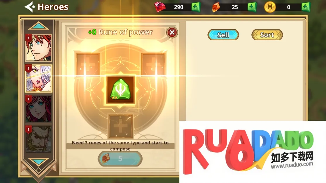 3、多种游戏模式,无尽挑战与刷宝石结合,增添游戏趣味性,还可招募远古神与多英雄,召唤升级符文,增强战斗实力。