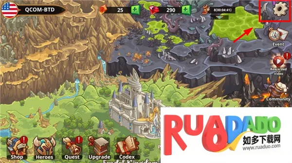 1、下载并安装本站提供的战国争霸2最新版,打开进入游戏点击右上角设置按钮