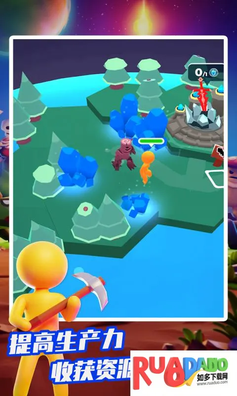3. 创建星球世界时,能用金属道具制造实用武器,升级镐头提高生产力,收获更多资源继续建设。