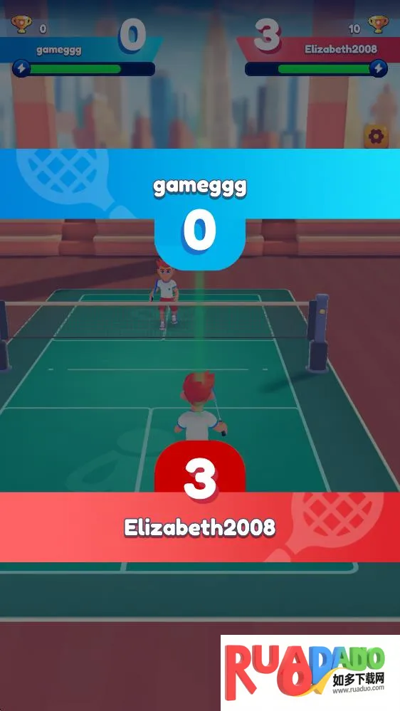 3、正式开始后向上滑动屏幕和向下滑动屏幕都可以击中将对手打过来的球。