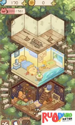 3. 日常经营内容多样,要完成铲屎、清洁、采集食材和制作料理等任务来获金币,解锁更多扩展层数。