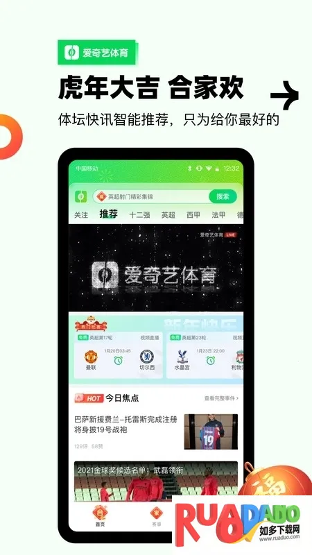 爱奇艺体育最新手机版是爱奇艺旗下的体育直播平台,汇聚足球、篮球、网球等多种赛事。提供高清直播、赛事回放及资讯,还有专享权益和特色内容,如前方采访、高尔夫赛事等,满足体育爱好者需求。