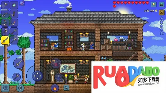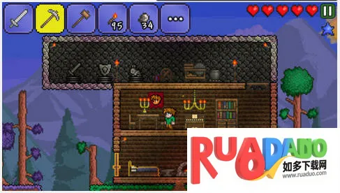 1、《Terraria》玩法丰富,自由度极高。玩家能自由探索世界,清除领地内敌人,完成各种生活任务,还能随意拾取武器与敌人作战。