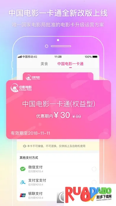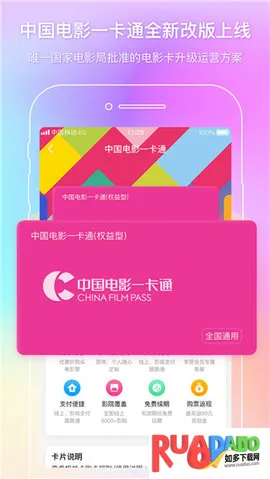 中国电影通app是专业电影服务软件,涵盖近9000家影院,提供影视资讯、线上购票等服务。有特惠活动、会员特权,支持多种卡类,可GPS定位周边影院,还能线上充值影城会员卡,整合卡于钱包方便使用。