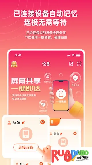 远程同屏大师2026可实现实时屏幕共享与操作协助,同步对方手机画面并听清环境音。采用双重验证防未授权访问,投屏稳定流畅,自动记录配对设备,操作简单,适用于多种场景,能高效解决各类远程协助问题。