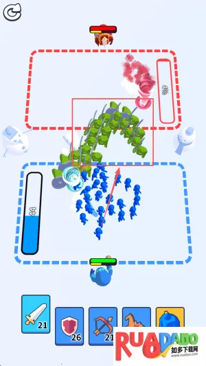 1. 玩法生动热血,操控橡皮人兵种对决,有战术布局策略性与击溃敌人爽快感。