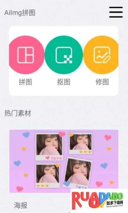 AiImg拼图是专业图片编辑软件,有海量实时更新素材。能自由拼图美化,含抠图、修图等功能。可导入图片,选模板套用,操作简单。有多种拼图样式、实用滤镜贴纸,支持添加文字涂鸦,功能免费,助你轻松作图。
