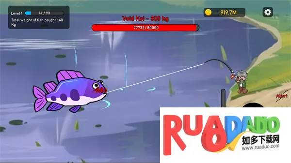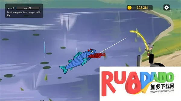 3、无需等待快速上钩,与鱼儿激烈战斗,钓鱼奖励升级,循环钓鱼赢金币、升级装备、解锁强大力量。