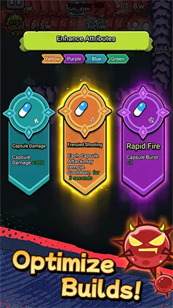 想在细胞保卫战中玩得更出色?这里有超实用攻略!进入游戏后,按住角色左右滑动屏幕就能控制移动与射击,操作简单又带感。战斗时敌人会掉落宝箱,打开可获属性强化机会,从随机生成的三张属性卡中挑一张强化,卡片品质越高加成越强。觉得节奏慢,点左上角加速按钮就能畅快射击。成功消灭所有敌人就能完成关卡。空闲时记得升级武器装备提升攻击力。玩的时候还有不少技巧,比如强化选药丸数量 -2 属性,能增加药丸数提升输出频率;优先打高数值敌人保证输出效率;技能不满意可免费刷新;强化选攻击增幅提升药丸暴击率和伤害。掌握这些攻略,能帮你在细胞保卫战里更好地抵御病毒细菌,享受游戏乐趣,轻松通关,快来试试吧!