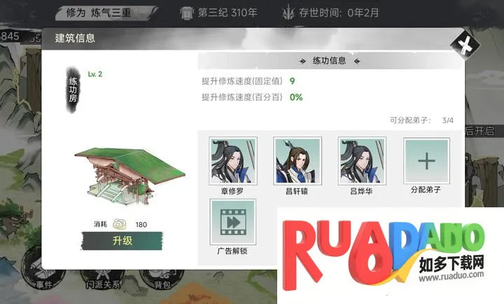 3. 可在宗门招收弟子,悉心培养,壮大自己的门派。
