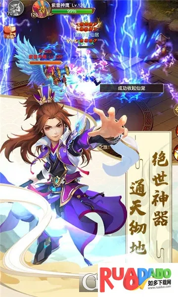 2. 游戏里有狂战、飞羽、舞天、魅影四大职业供你选择,还有上百种可爱仙宠,能附身提升战力、互相融合升级品质并学习新技能。
