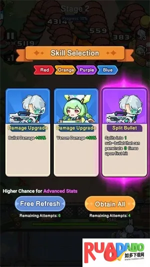 2. 小队成员战斗积累经验升级,解锁新技能装备,收集道具提升战力。