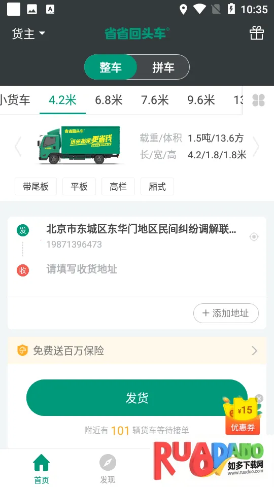 3. 提供提货送货服务,车型丰富,同城跨城运输均可,运费比市场价格便宜30%,货主能自由选合适司机。