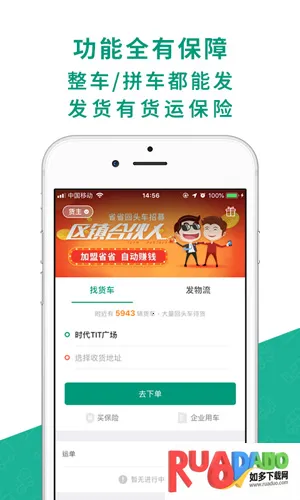 1. 注册简单且免费使用,达成交易后双方能进行免费运费担保交易、订单管理、一键买保险、定位、互相评价等。