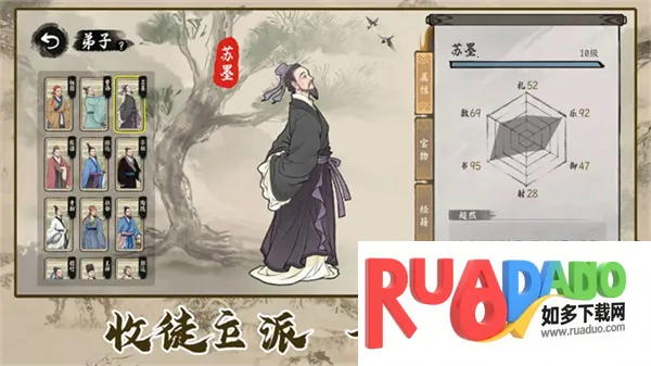 10.玩家可以从论辨和宝物招揽弟子,影响论辨的是弟子的特殊能力,当弟子在论辨中上阵时,效果便会生效