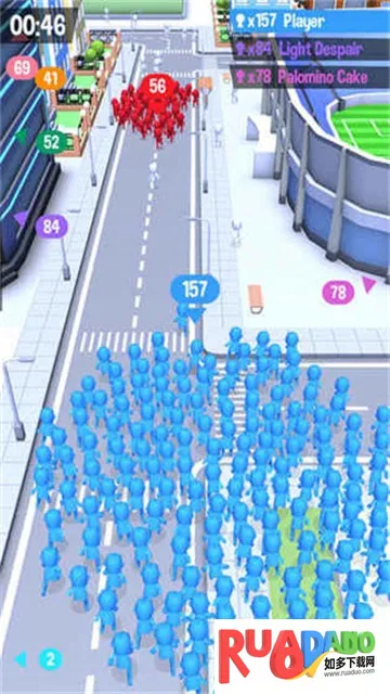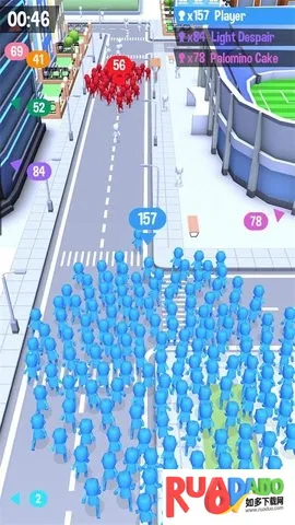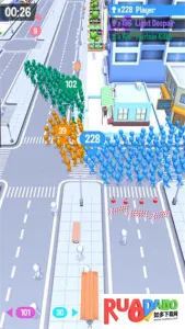 拥挤城市老版本是一款以人作为争夺单位的io乱斗游戏。玩家在虚幻呈现的都市舞台,通过吞噬壮大自身,有简单直观玩法与多样关卡。可自主选颜色名字,利用地形技巧,还有抓小偷等特色玩法。