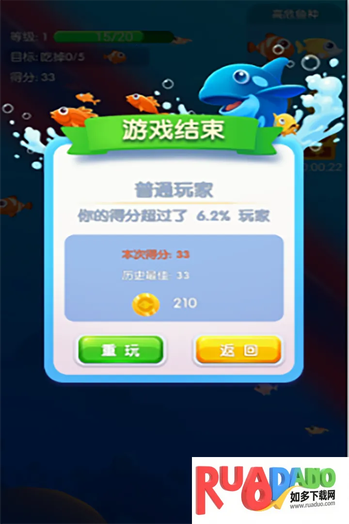 4. 多样游戏玩法:可选择多种鱼类,控制移动吞食小鱼变大,注意避开危险升级挑战 。