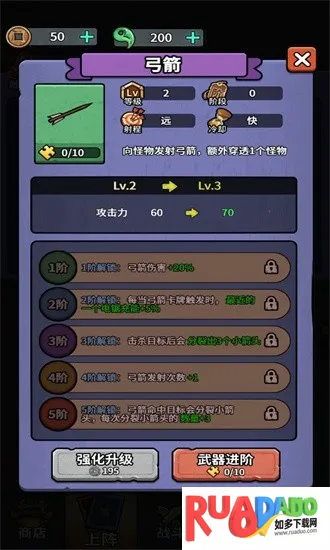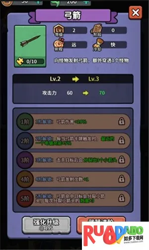 3. 有丰富卡牌可自由搭配,局外选武器特技,局内合成升等级。