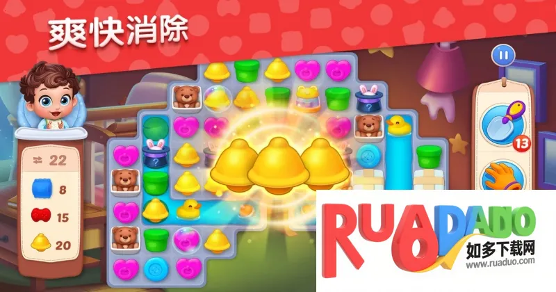 1、融合三消闯关与房屋装修、婴儿养育,玩法丰富。
