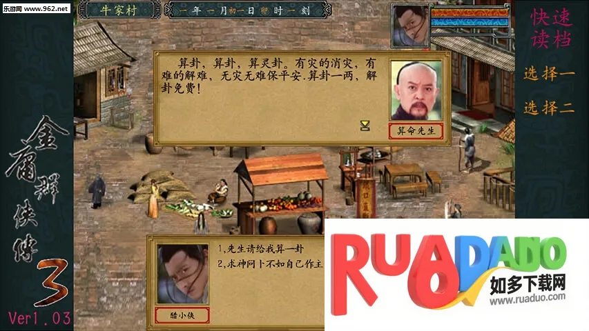 在金庸群侠传3里,开局答题可是很关键的哦!它能决定你的初始属性呢。答题内容多样,比如是否知道游戏作者署名、是否保留金3最强初始存档等。不同的回答会带来不同的属性加成。像第一题答“5.力道2根骨2悟性2福缘2灵敏2”,就能获得相应属性。第二题若答3且在第二题答3或4,会增加物品木剑x1菜刀x1木棍x1飞镖x100等。通过巧妙答题,你可以让力道、根骨、悟性、福缘、灵敏等属性更符合自己的游戏规划。这对于想在游戏中快速成长、选择合适门派、学习强力武学的玩家来说,便利性十足。能帮你在开局就占据优势,更顺畅地踏上江湖冒险之旅,轻松应对各种挑战,体验不一样的武侠人生。