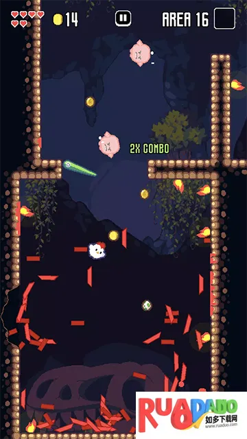 游戏玩法超丰富,操控角色完成奔跑、跳跃、躲避障碍等动作,应对不断变化的障碍和敌人。每个关卡都有独特挑战,比如在区域3要躲避红色怪物攻击,利用场景元素击败敌人,还得保留爱心防止失败。收集金币能解锁角色或升级能力。