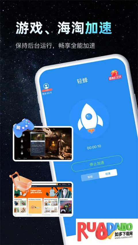 使用起来很简单,用手机号码注册登录后,点击海外加速,首次加速需授权,授权成功再次加速就开启啦,后台保持运行,打开要加速访问的海外应用或网站就行。