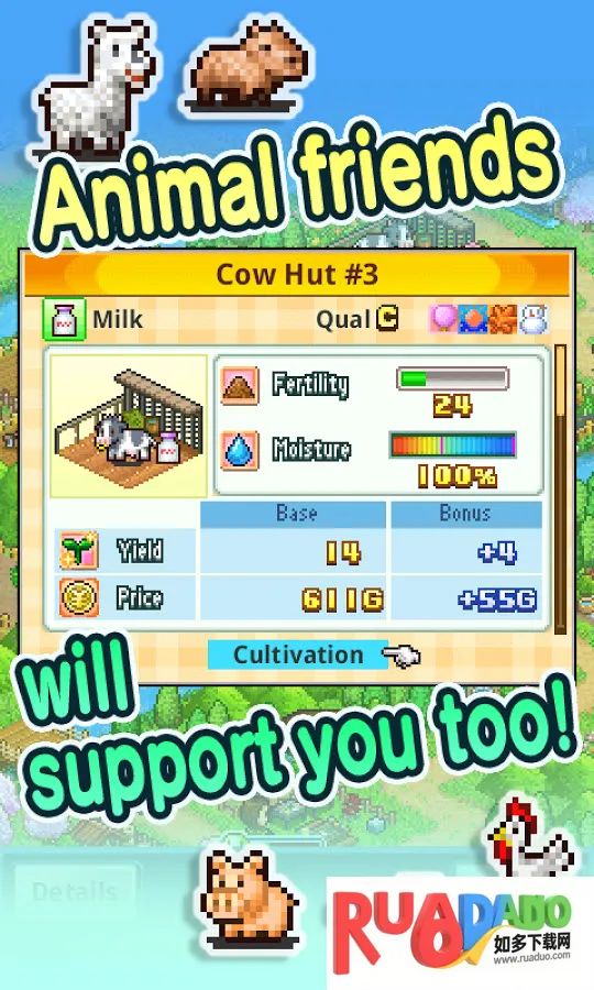 口袋农场汉化版是竖屏像素风模拟经营手游,玩家经营农场孵化未知蛋,探索野外找蛋,与宠兽并肩作战挑战魔王。有独特探索机制、倒计时养成等亮点,还有深度数值培养等特色玩法。
