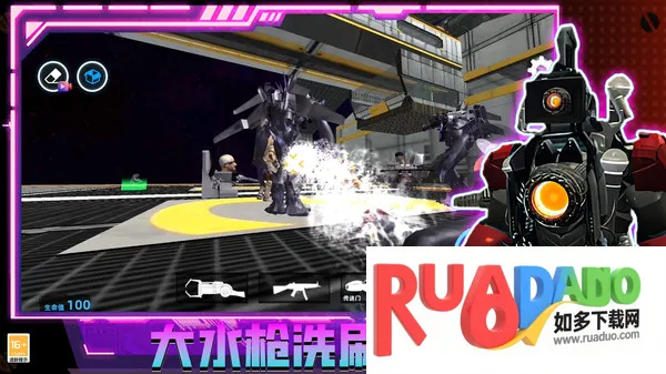 4. 玩家在错综复杂的环境中操控马桶人战士与敌人激烈战斗,感受紧张刺激。