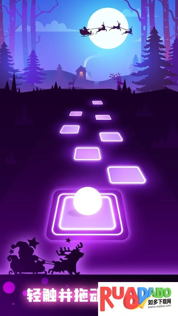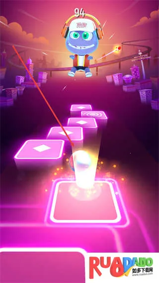 4. 基本操作方法:球体接触带箭头瓷砖时迅速点击屏幕,配合曲目节拍连跳获得分倍数提升。