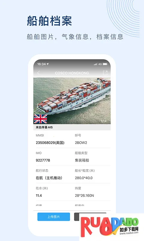 4. 海事微档案:可查看船名、登记呼号、船型、总吨位等详细信息。