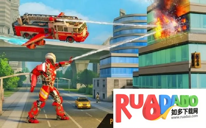 飞行消防车是模拟驾驶游戏,玩家操控能飞行的消防车在城市执行任务。接火警后迅速赶往现场灭火,结合地面与空中玩法独特。有多种消防车款式,3D场景高清,操作界面便于控制,完成任务可获奖励,还能解锁新机器人。
