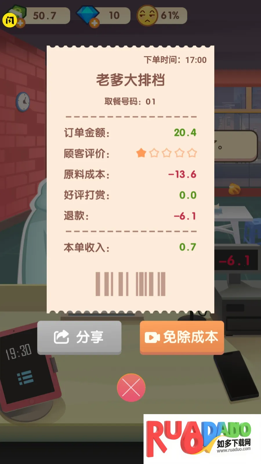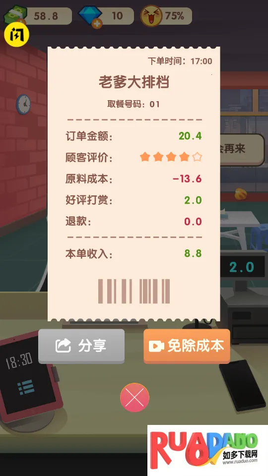1. 游戏过程中能不断提高经营水平,维持好自己的店。