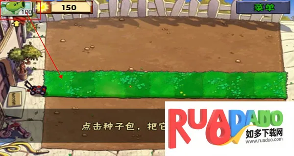 2、点击冒险模式,进入游戏,进入新手指导,玩家需要点击植物放置合适的位置;