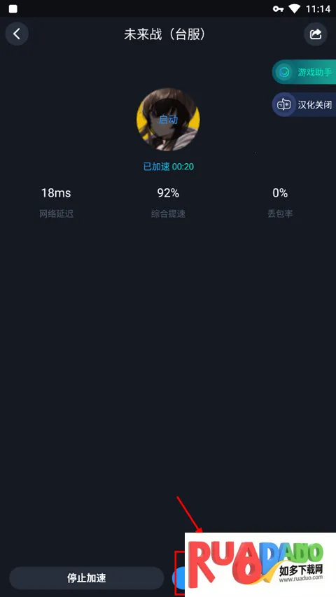 2、等待加速完成启动游戏;