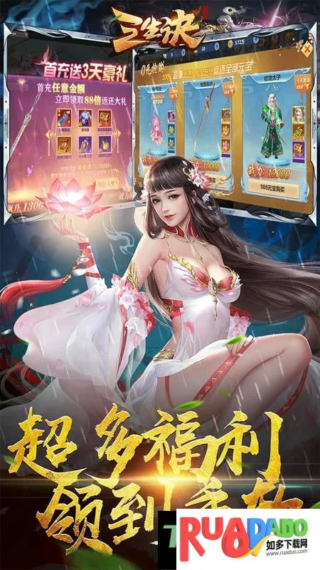 1. 三生诀最新手机版运用前沿3D游戏引擎技术,实现万人同屏对战,场面宏大。