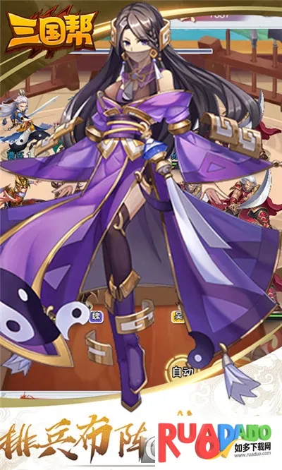 2. 以三国为背景,继承经典卡牌玩法,融合原著剧情,采用Q萌风格塑造角色,还原经典人物形象与故事片段。