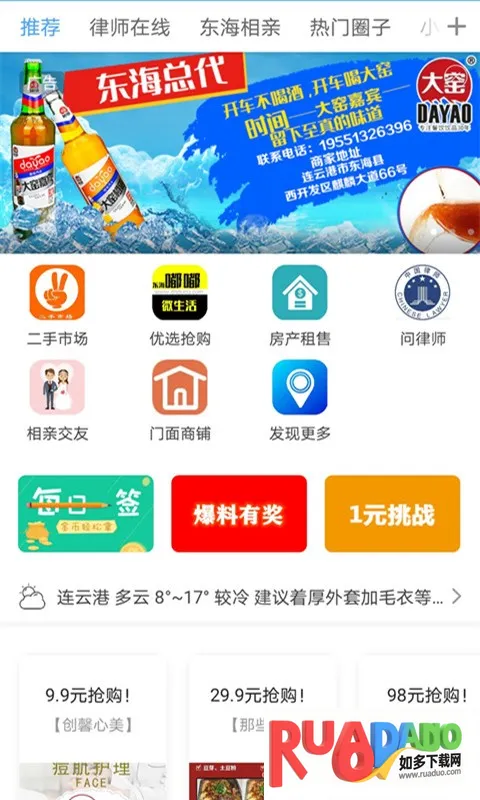 1. 它是东海本地生活便民服务平台,覆盖生活方方面面,吃喝玩乐住行等一应俱全,方便市民使用体验。