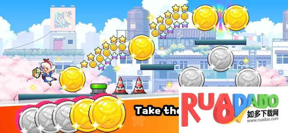 2.进入游戏世界后,只需轻触屏幕便可操控角色进行跳跃冒险,同时沿途收集闪耀的硬币。