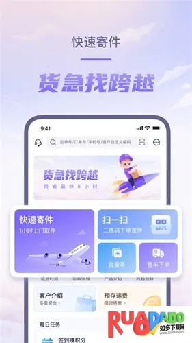 跨越速运app是跨越速运集团打造的移动快递管理应用,提供一站式快件服务。有下单查单等功能,支持电子运单寄件、在线支付,还有生鲜速递等特色业务,承诺限时未达全额退款,时效多样,操作便捷。