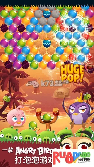 愤怒的小鸟泡泡大战2026官方正版延续经典玩法,玩家操控弹弓发射彩色泡泡。游戏融入可爱元素,众多经典角色登场。玩法多样,关卡丰富,还有全新小鸟形象、森林危机故事线,操作简单易上手,每周更新内容。