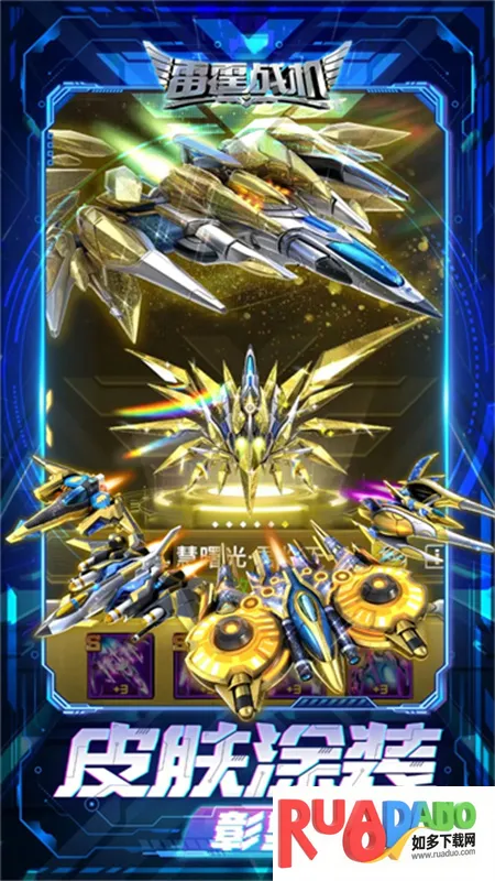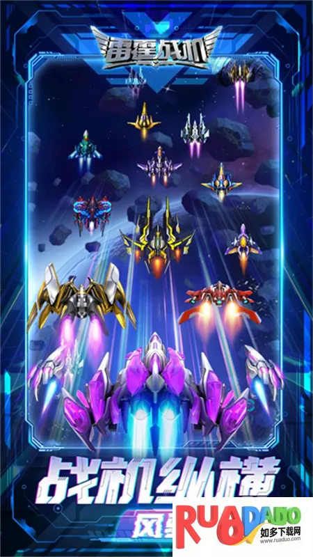 1. 游戏致力于打造未来科技感十足的战机,每种战机都有独特战斗设定与弹幕特效,玩家可依玩法或场景搭配不同装备。