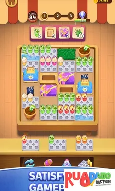 4、按颜色整理咖啡包完成订单,玩法包括选中拖动放置,规则是同色堆叠,要策略规划,难度递增,锻炼逻辑思维与组织能力。