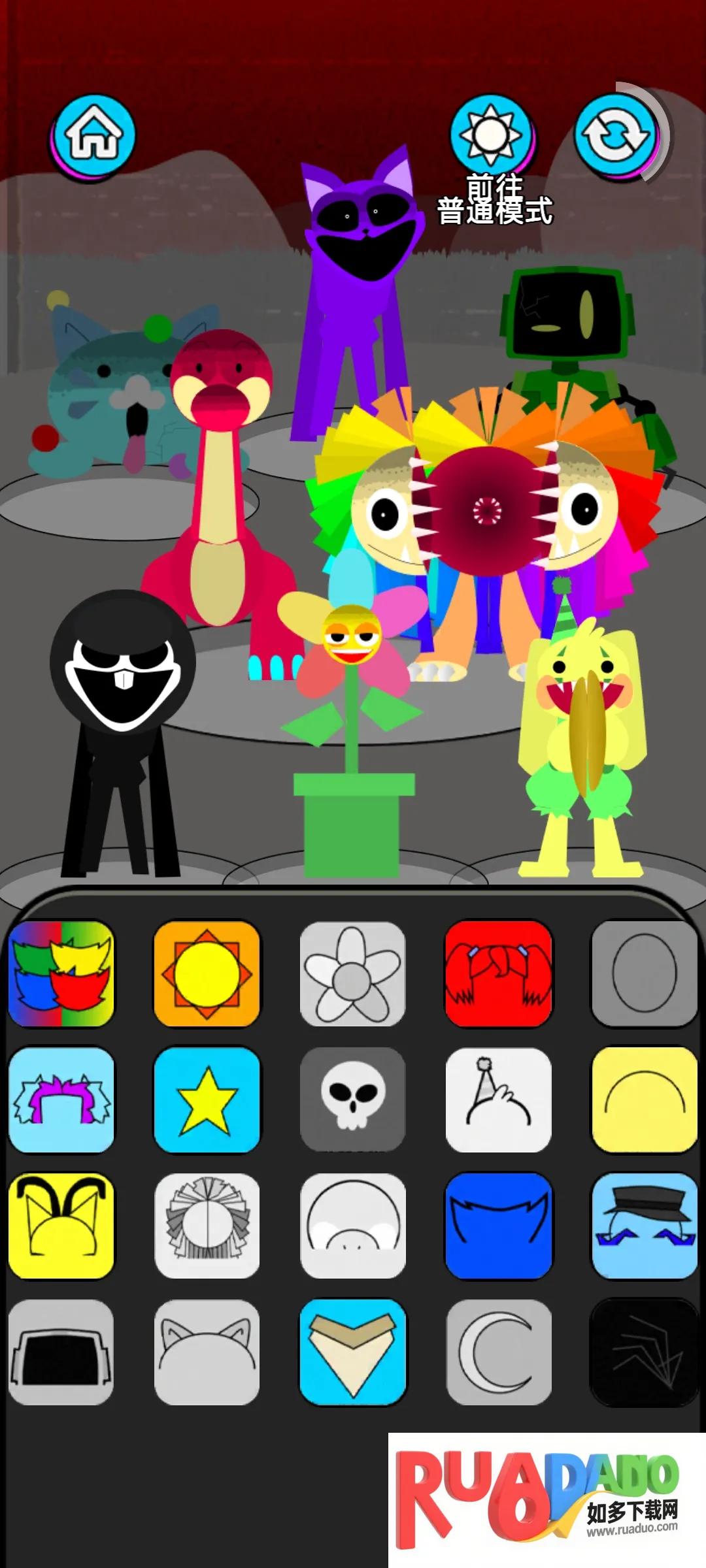 3. 第二代包含普通模式、恐怖模式及隐藏惊喜,完成挑战可解锁内容,增强了个性化体验,如角色自定义、声音上传和稀有Sprunki之星兑换奖励。