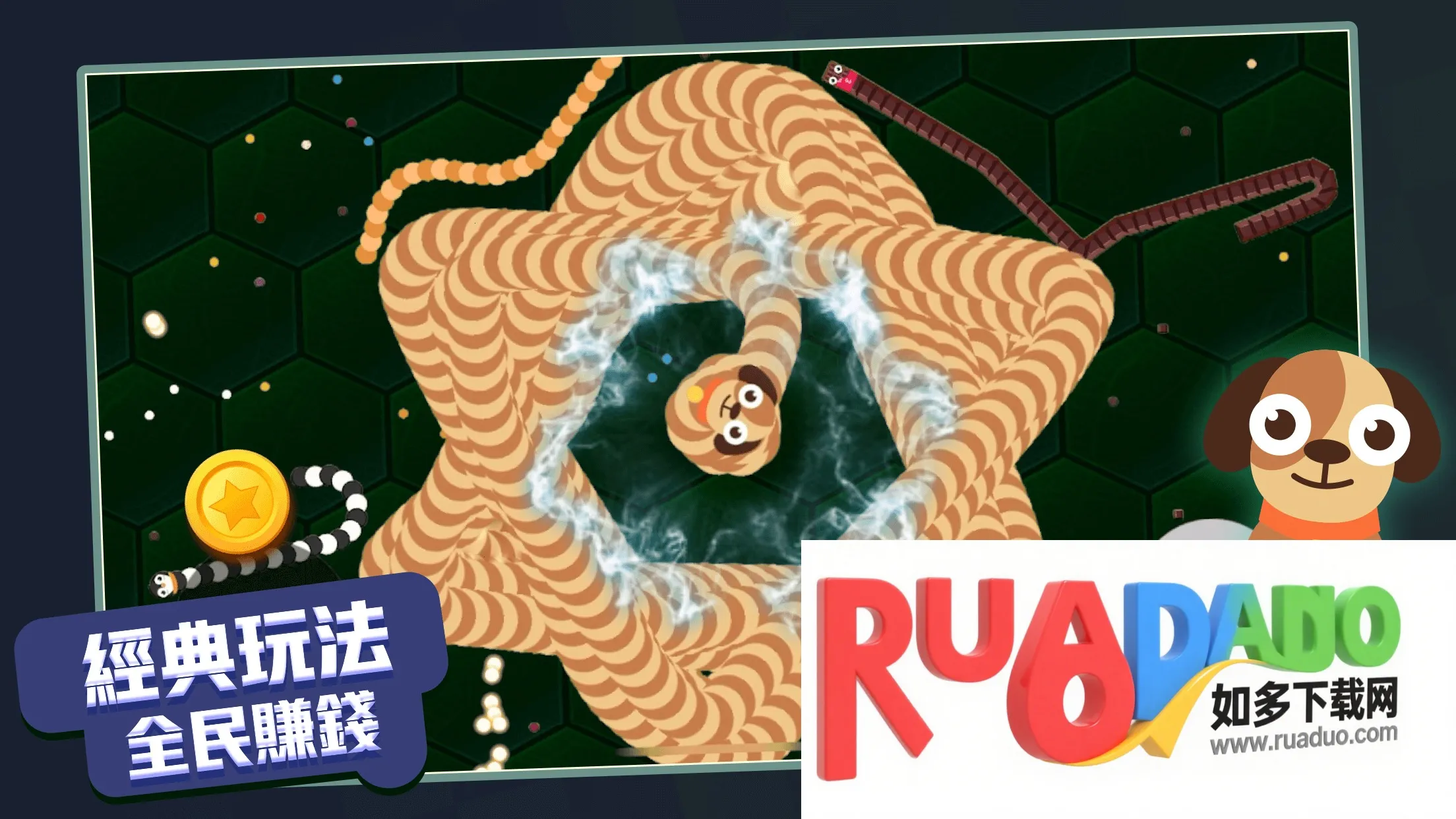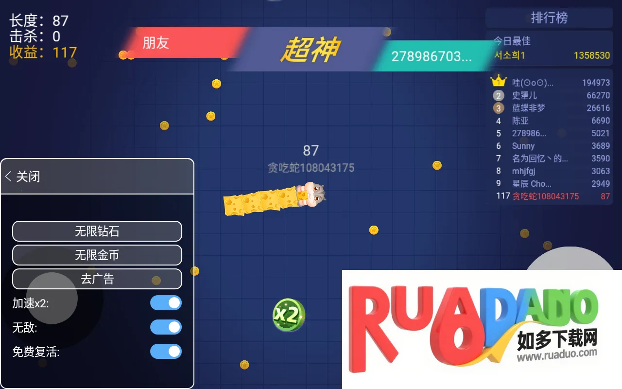 3. 能体验不同皮肤带来的有趣过程,娴熟操作快速增加蛇长度。